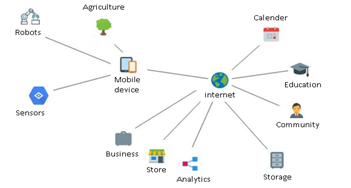 Figure 1 exemplifies a practical case of informatic interaction in agriculture and electronic commerce ensuring sedentary lifestyle in rural areas, dispersion of commerce, segmenting cultivation with intergenerational sustainability. Some of the capabilities of the Internet and a mobile device are storage, analysis, community, timing, education, sensing, and robotization. Storing data in data processing centers makes it possible to infer on the complex life cycle of knowledge, in an agglomerate way such as business mobility using travel pass[11] where information can be combined. Being the results saved, analyzed and commented on community and exchanged in Wikipedia or on facebook. The timing for forecasts with the consultation of the ipma website (Institute Portuguese of The Sea and Atmosphere). Education regarding the mode of cultivation through search engines among them google giving information for example in the expectation of certain plant. Sensing with a mobile phone[12, p. 5] provides the capture of actions for quality control quality analysis. Posting videos to youtube makes possible to enable superior cognition. This can be done with google collab and yolo algorithm. Also, the use of robots commanded via Bluetooth with gatttool moving a Lego engine for agricultural automation. Bionanotechnology uses guidance from nature at the atom level to engineer and manufacture[13, p 8]. This can be the solution for the future of computation[14]. That would also be closer to the topic of health.