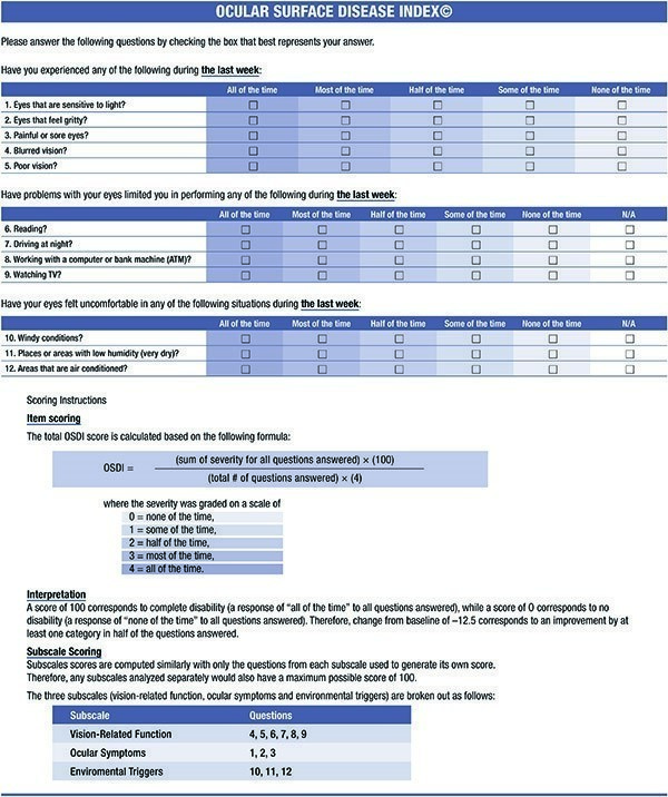 Prominently important is how the patient is feeling. For verification of the diagnoses there are questionnaires such as DEQ5 and OSDI.