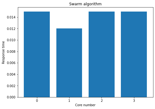 A file is produced that contains after the execution the core, response times for first round-robin then swarm. The code 0 is given when the command is successfully executed, while 124 when the referred bug occurs. Several tests were carried out trying to improve the execution time. Concluding that the time given to execute the task influences the performance of the algorithm. Software with defined to use specific core, usage of random-access memory partition and self-learning can serve of advantage while architecting software.